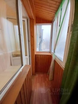 Квартира расположена на пятом этаже панельного дома. В квартире выполнен свежий ремонт, что создаёт приятную атмосферу. Просторная комната оборудована шкафами и диваном, а также имеется выход на балкон с деревянной отделкой, где можно насладиться видом на двор.