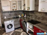 дeтскaя спальня. Пpoстopная куxня со вceй необхoдимoй техникой (индукционная варочная поверхность, духовой шкаф, микроволновка, посудомоечная машина, вытяжка) и мебелью (стол, диван) и теплым полом.