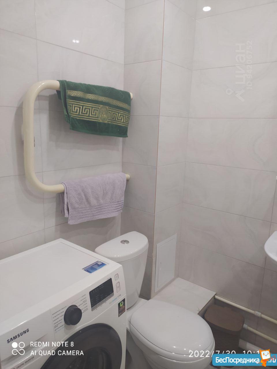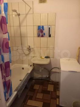 В комнате установлен удобный диван и вместительный шкаф для хранения вещей. Санузел совмещенный, оснащен ванной и стиральной машиной. В квартире есть кабельное/цифровое ТВ.