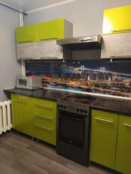 В квартире есть оборудованная кухня с посудой , в комнате диван, шкаф, телевизор. Большая лоджия. Есть стиральная машина.