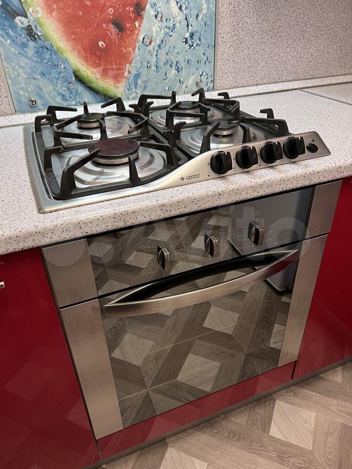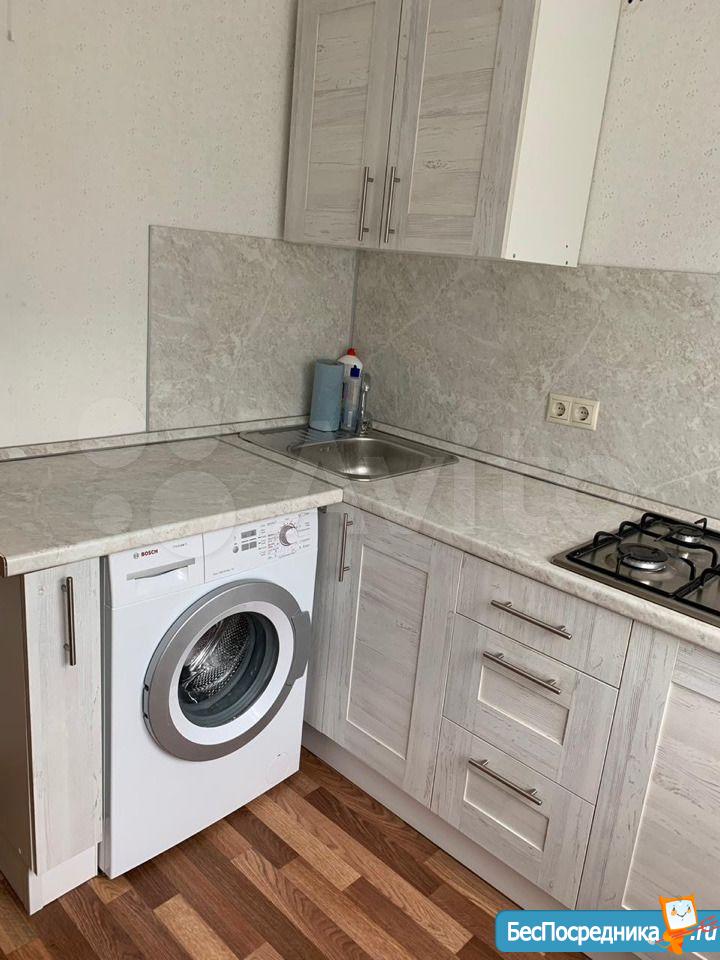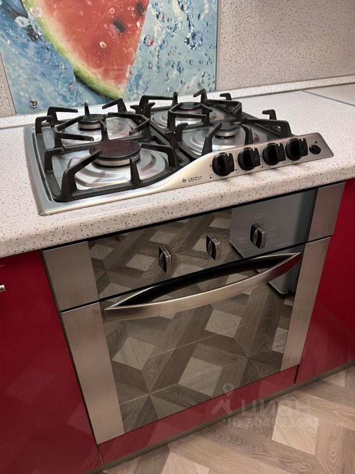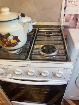 Из техники есть всё, что нужно - холодильник, микроволновая печь, варочная газовая поверхность, духовка, вытяжка с подсветкой, стиральная машина, водонагреватель, телевизор с поддержкой интернета и со светодиодной подсветкой.