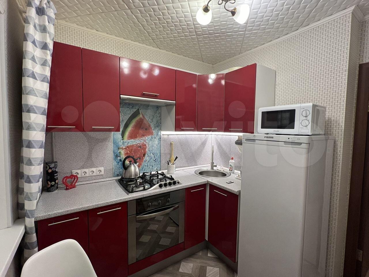 В квартире сделан косметический ремонт, есть вся необходимая мебель как на кухне, так и в комнате. Для вашего комфорта установлены холодильник и стиральная машина. Санузел совмещенный, оборудован ванной.