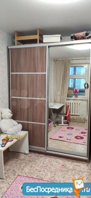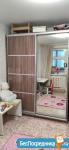 В спальне шкаф-купе, и детская мебель: кровать, стеллаж для учеников, и платяной шкафчик.