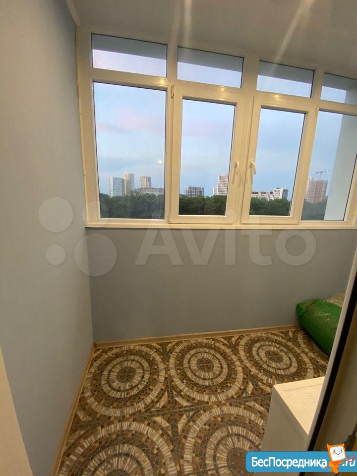 В квартире большая лоджия , детская площадка, охраняемая территория, шлагбаум, консьерж.