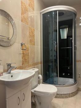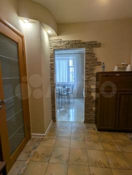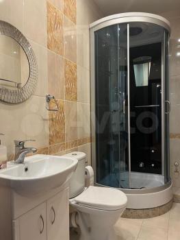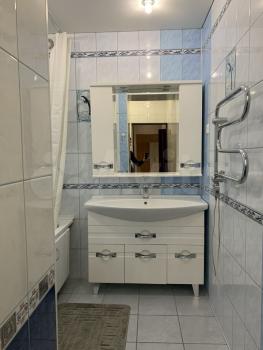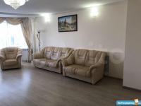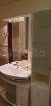 ⠀На кухне имеются кухонный гарнитур, газовая плита, электрическая духовка, чайник, микроволновка, вытяжка и холодильник. В зале имеются диван, два кресла, ЖК-телевизор диагональю 50 дюймов и кондиционер. В спальне имеются двухместная кровать, две тумбочки, шкаф и комод. В кабинете имеются одноместная кровать, компьютерный стол с полками. В прихожей имеются шкаф, тумбочка с зеркалом, вешалка и комод для обуви. В одном из сан.узлов имеются сауна с электрической печью, душевая с электро-водонагревателем на период отключения горячей воды, стиральная машина, фен для волос умывальник со шкафчиком и унитаз. Во втором сан.узле имеются ванная с душем, умывальник со шкафчиком и унитаз.