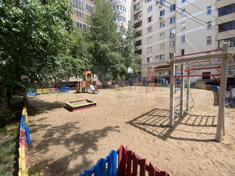 Обустроенная придомовая зелёная территория с детской площадкой и скамеечками для взрослых. Закрытый двор с пропускной системой и видеонаблюдением.