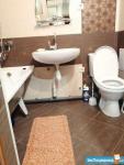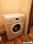 Что есть: кухонные шкафы, два водяных крана (один в уборной, другой на кухне), электроплита, ванна с душем, три дивана, четыре стула, кухонный стол, стиральная машина, холодильник.