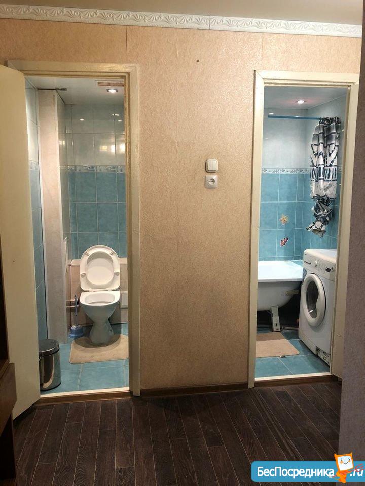 В квартире выполнен косметический ремонт, который создаёт приятную атмосферу для проживания. Комнаты обставлены необходимой мебелью, а на кухне есть всё для комфортного приготовления пищи. Из техники в вашем распоряжении: кондиционер, холодильник, телевизор и стиральная машина. Санузел совмещённый, с ванной.
