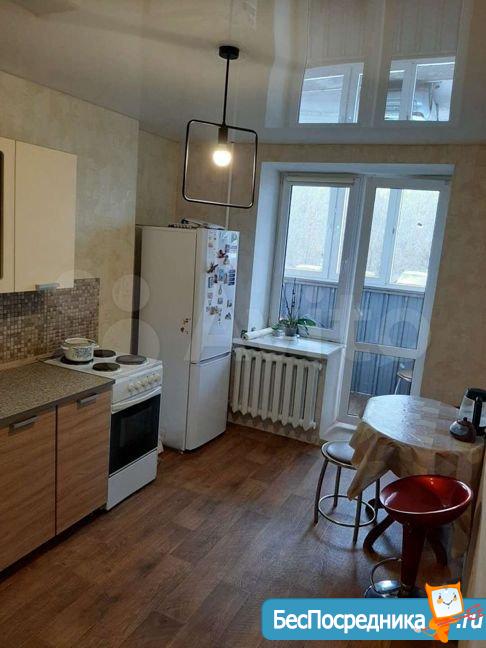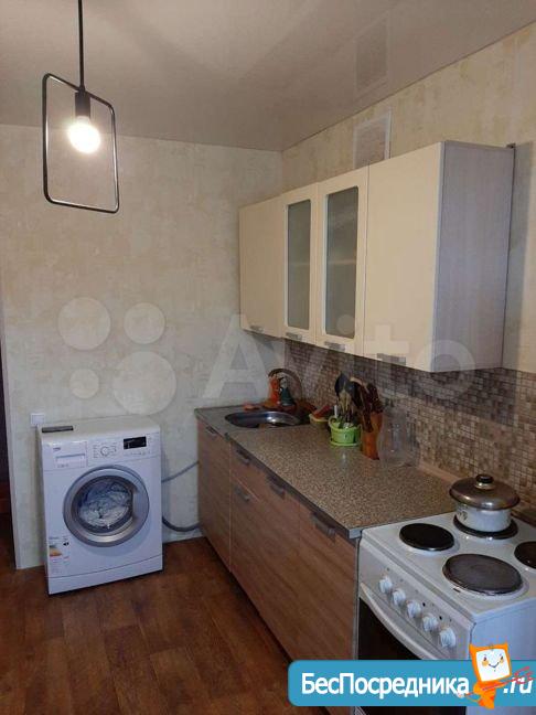 В квартире есть все для проживания, включая кухонный гарнитур, обеденный стол со стульями, холодильник, стиральная машина, диван, шкаф-купе. Большая кухня.