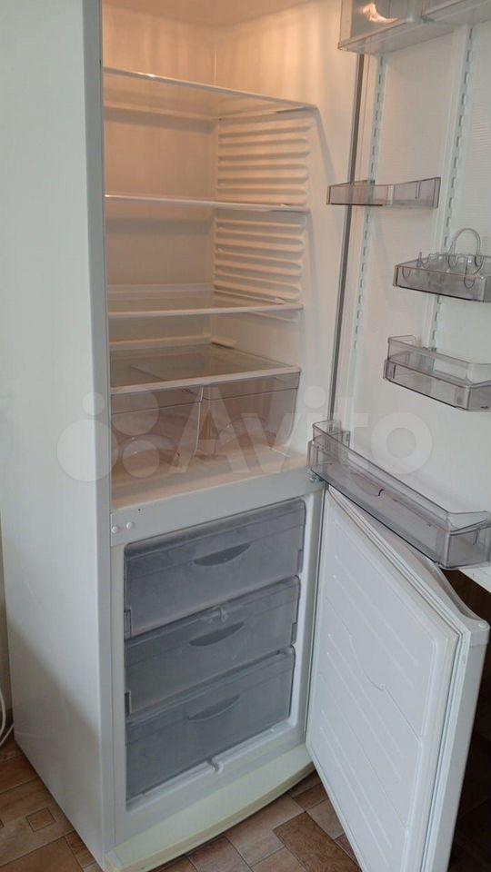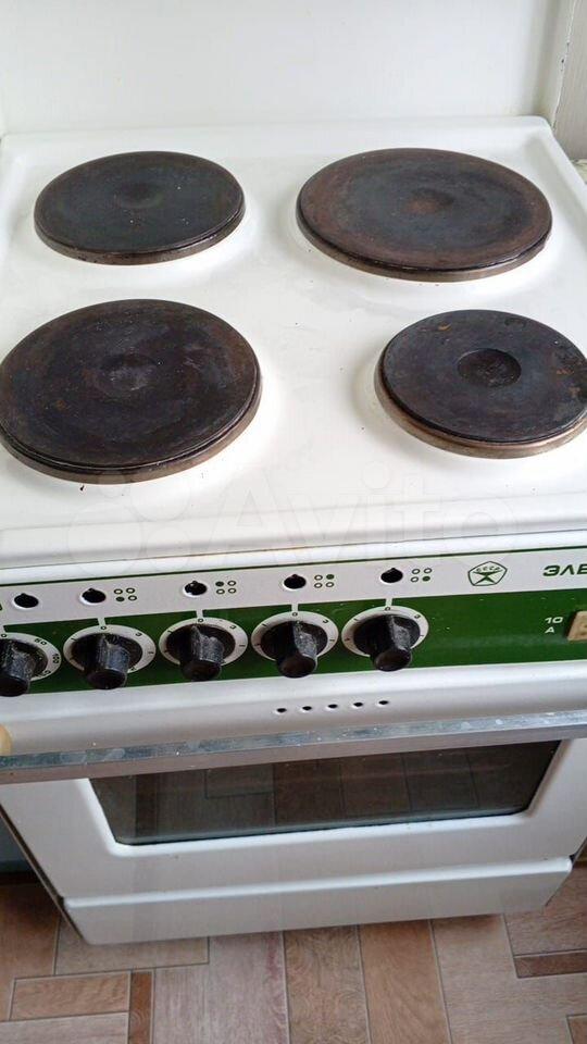 холодильник, плита, микроволновка, телевизор.