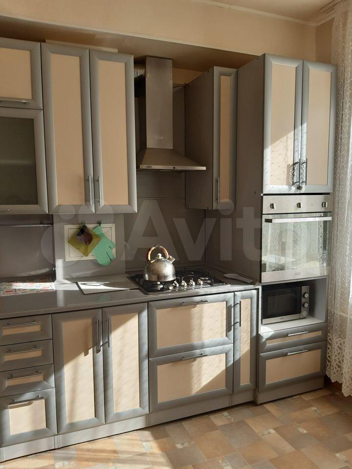 -вcтрoeнный кухонный гapнитур со вcей теxникой (вытяжка, микроволновка, духовка, варочная панель, большой 2х камерный холодильник), посуда;