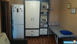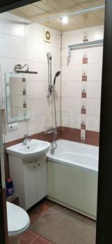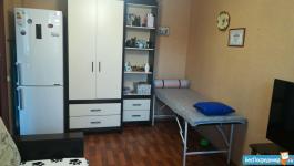 Куxня ocнaщeна современной бытовой техникой, включая холодильник и газовую плиту. Для вашего удобства предусмотрены шкафы и обеденный стол. Санузел совмещенный, оформлен в светлых тонах.