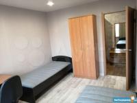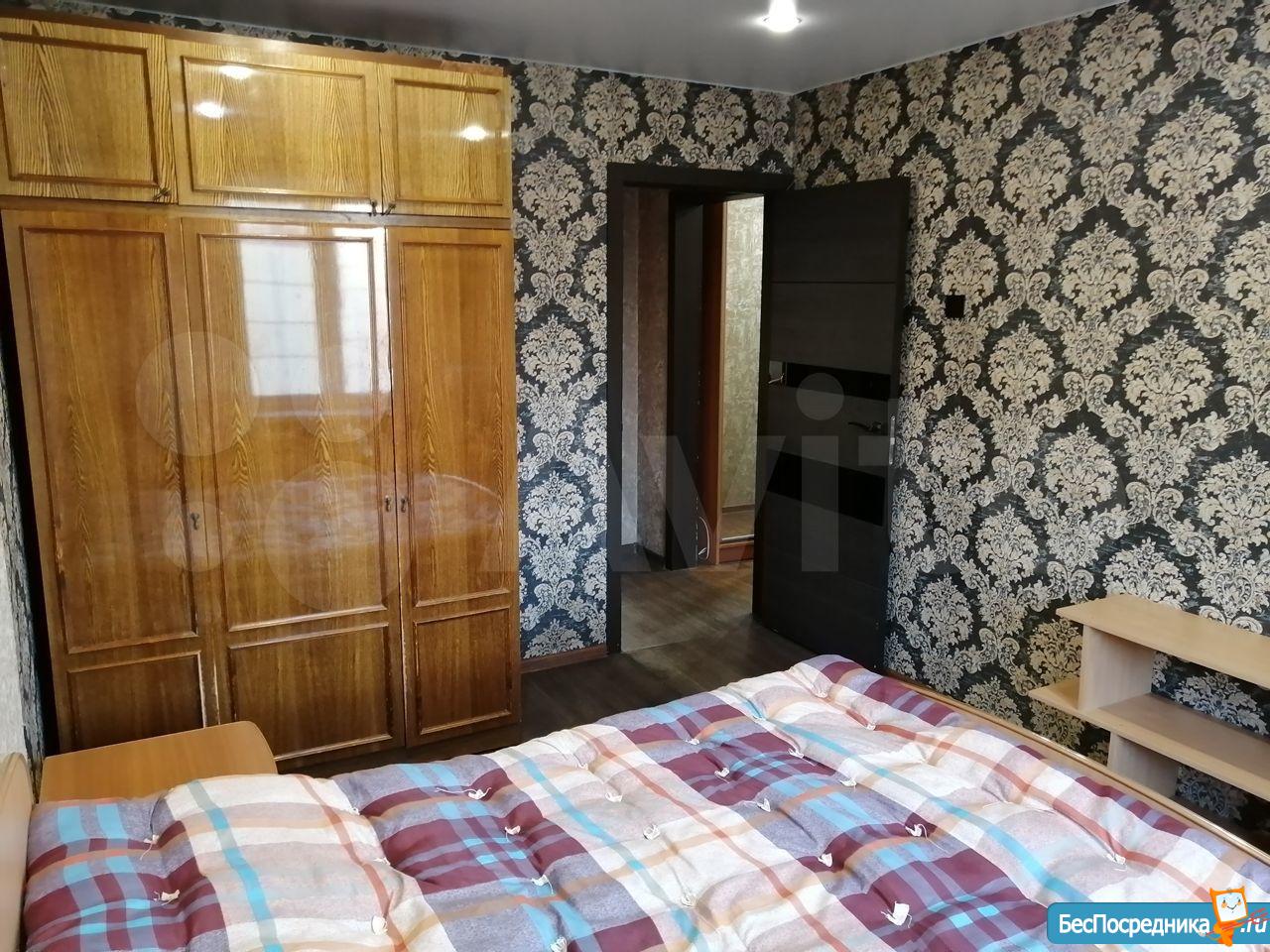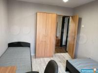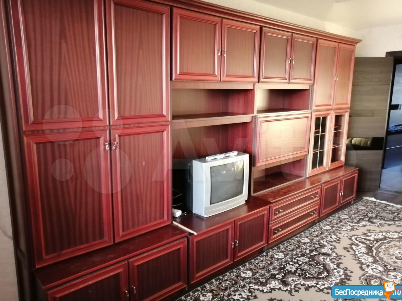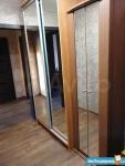 Лоджия застеклена. Одна большая двухспальная кровать, две односпальные кровати, один раскладной диван. 2 кресла. 2 шкафа в комнатах, стенка в зале, вдоль коридора два шкафа и трюмо. 2 телевизора, холодильник, микроволновка, стиральная машина, столы, стулья, электроплита. Санузел раздельный. Домофон. Окна выходят на 2 стороны.