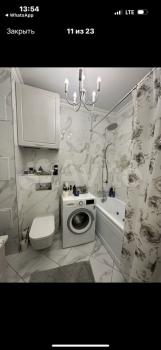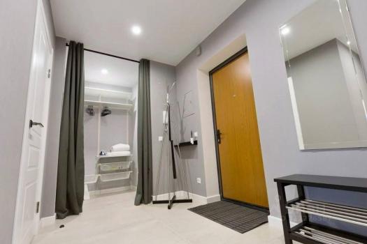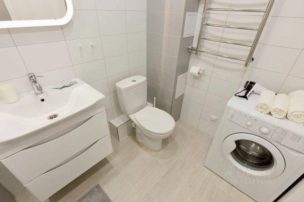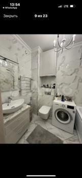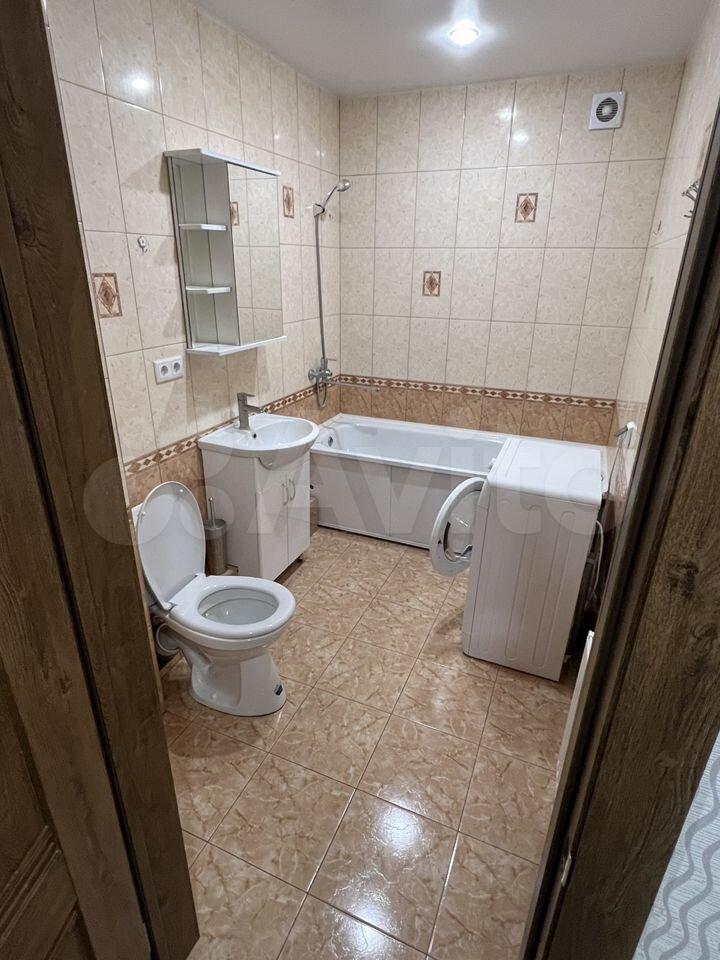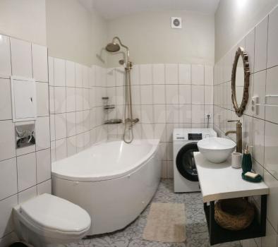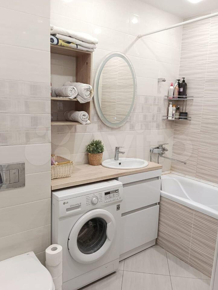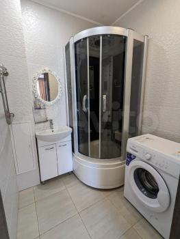 Ванная комната совмещенная, оснащена всем необходимым, включая водонагреватель и стиральную машину. В прихожей установлены вместительные шкафы-купе.
