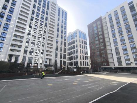 Жилой комплекс с закрытой охраняемой территорией, подъезд комфорт-класса. Двор без машин с подземной стоянкой.