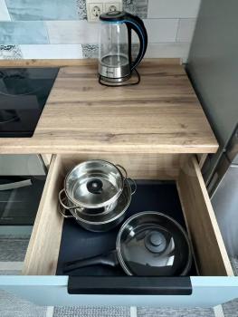 санузел - совмещённый, мебель - кухня, хранение одежды, спальные места, холодильник, плита, микроволновка, стиральная машина, посудомоечная машина.
