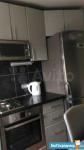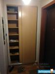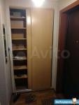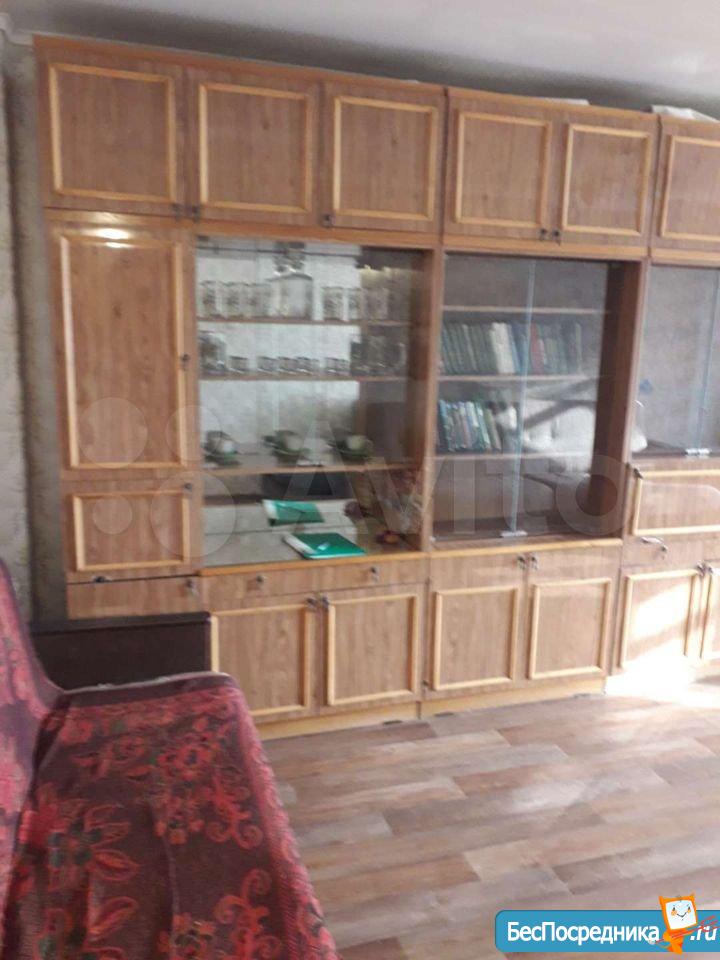 В зале стоит раскладной диван, , встроенный шкаф купе , стол . На кухне стол, стулья, холодильник.