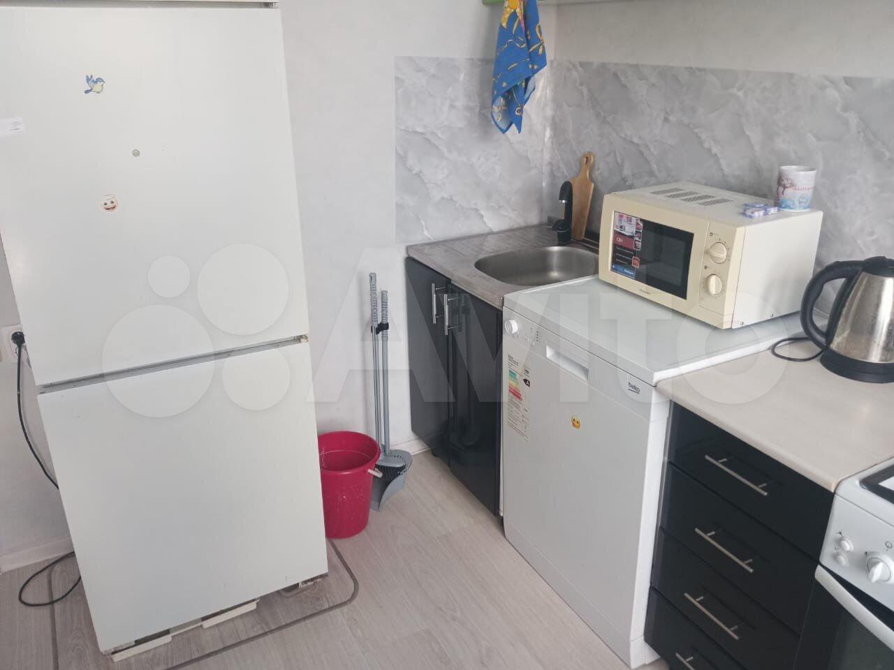 Квартира с мебелью, кухня полностью оборудована, есть холодильник, электрический чайник, микроволновая печь, посудомоечная машинка.