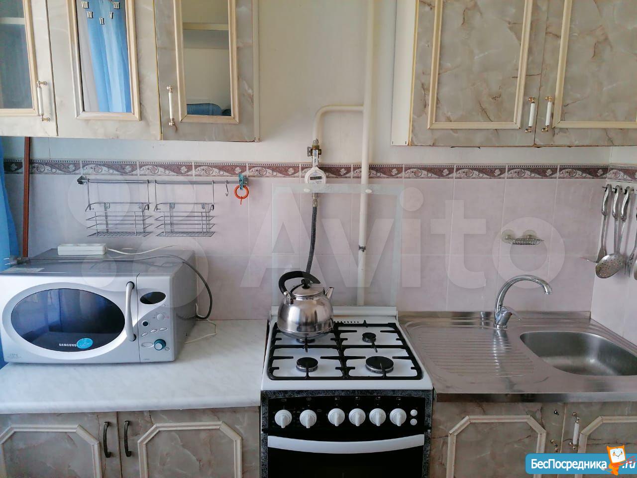 На кухне - холодильник, микроволновка, электрочайник. Санузел совмещенный. Цена 13 тыс. руб. в месяц. Залог - 50% арендной стоимости. Счетчики в стоимость аренды не включены.
