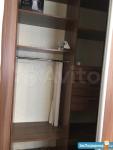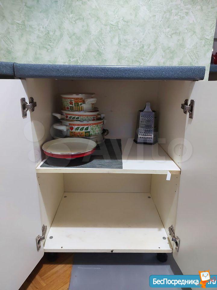 Большой встроенный шкаф, раскладной диван, стол, холодильник, стиральная машина, газовая плита
