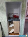 - большой встроенный шкаф, раскладной диван, стол, стулья, холодильник, стиральная машина, газовая плита