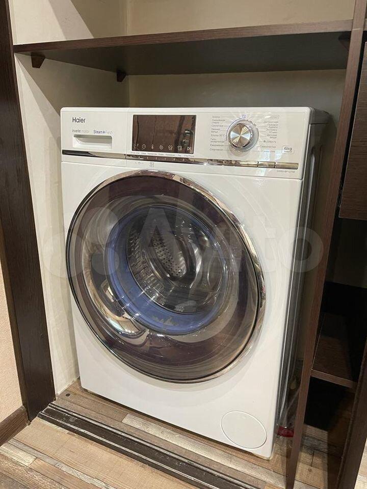 холодильник, плита, микроволновка, стиральная машина, телевизор.