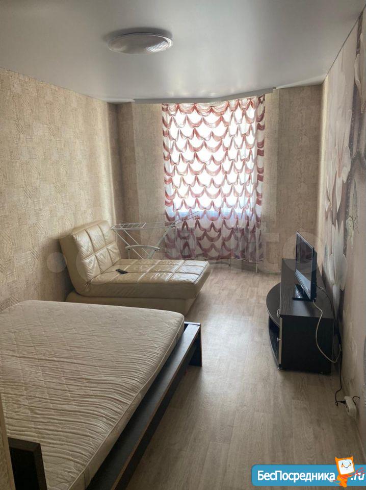 Просторная однокомнатная квартира с мебелью, со всем необходимым (микроволновка,холодильник, посуда, эл.чайник, стирал.машина,пылесос, 2 телевизора,кондёр) за 20000 руб. + вода, электричества отдельно. Сдаваться будет с 28 июля.