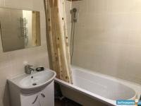 Санузел совмещенный, стены и пол выложены кафельной плиткой. Ванна и унитаз в прекрасном состоянии.