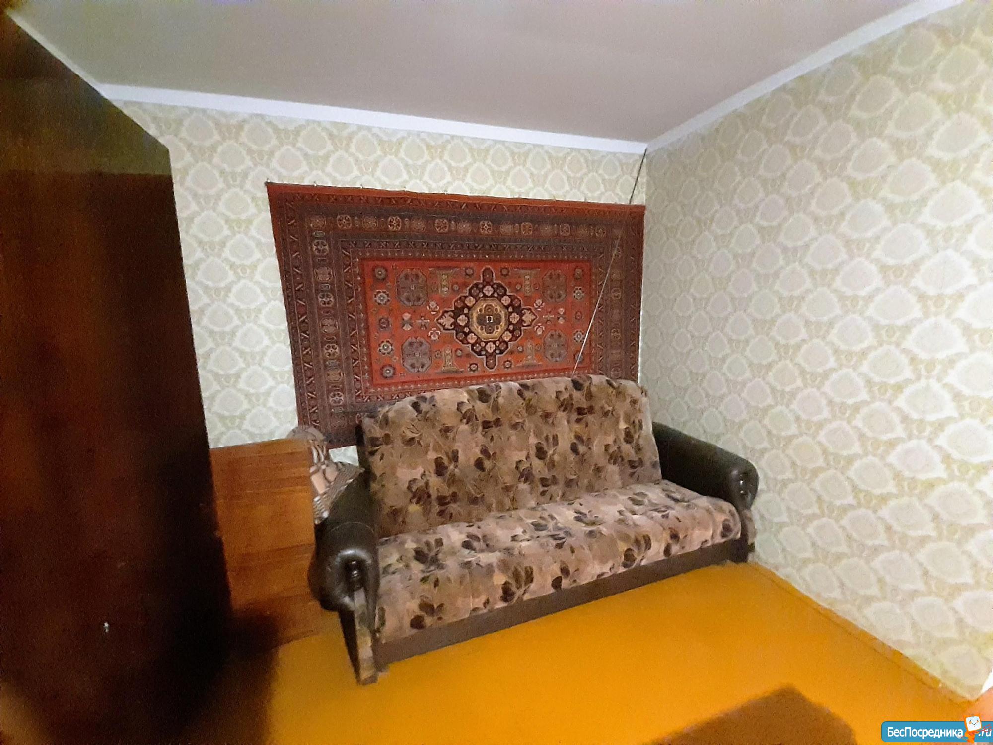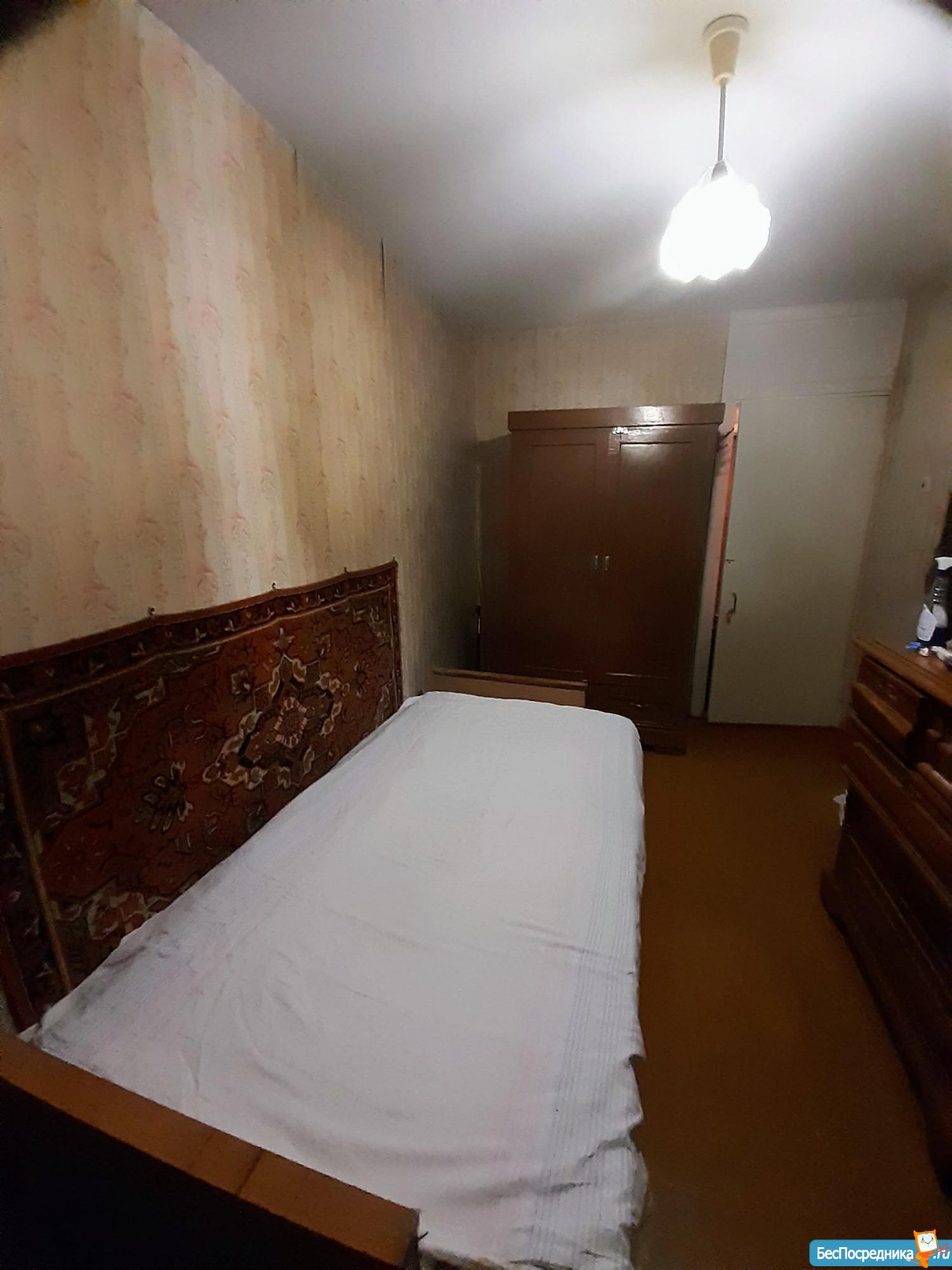 3 комнатная квартира. Одна из спален смежная с залом. Ремонт старенький. Необходимая мебель. Стиральная машинка малютка.