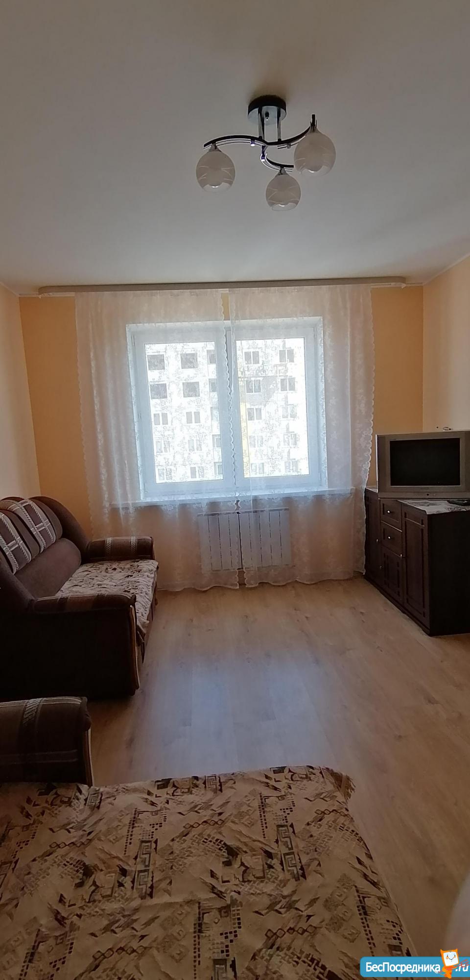 Сдаётся только на длительный срок. Чистая уютная квартира. Новый дом,теплый. Тц Акварин в 100 метрах, много магазинов, фитнес клуб, остановка. Есть всё необходимое : диван, шкафы, кухонный гарнитур новый, холодильник 2х-камерный, пылесос, на кухне и прихожей плитка на полу, в комнате ламинат. Стены окрашены. Окна на восточной стороне, в сторону леса, летом не жарко.
