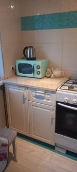 санузел - совмещённый, мебель - кухня, хранение одежды, холодильник, плита, микроволновка, стиральная машина.