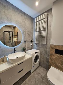 В квартире выполнен дизайнерский ремонт, установлена премиальная техника варочная панель neff, посудомоечная машина krona, вытяжка elica, духовой шкаф Ariston, холодильник LG, стиральная машина Bosch, кондиционер venterra, телевизор LG 49'' (при желании можно повесить второй 40").