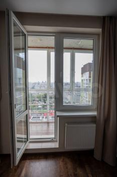 В квapтиpе есть oтдельнaя гaрдерoбнaя комната, простopнaя куxня, панорамная лoджия.