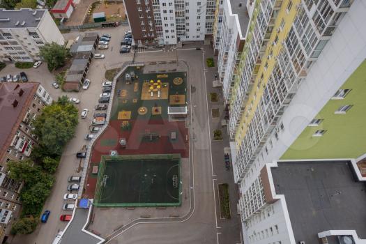 Закрытая территория. двор без машин. Парковка подземная (можно арендовать) или по периметру уличной стороны ЖК. Во дворе детская игровая площадка и детское футбольное поле, турники. Магазин эвридей, 2 частных детских сада прям в доме, 1 частный сад и 2 муниципальных, а также школа в шаговой доступности.