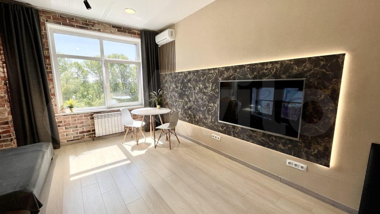 Сдается на длительный срок новая двухкомнатная квартира-студия. С ремонтом, новой техникой и мебелью. Фото реальные. Имеется холодильник, микроволновая печь, мультиварка, пылесос, стиральная машина, wi-Fi роутер.