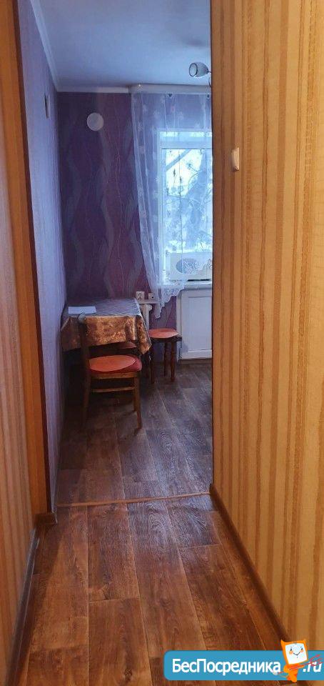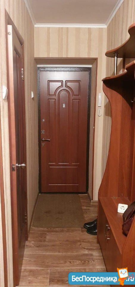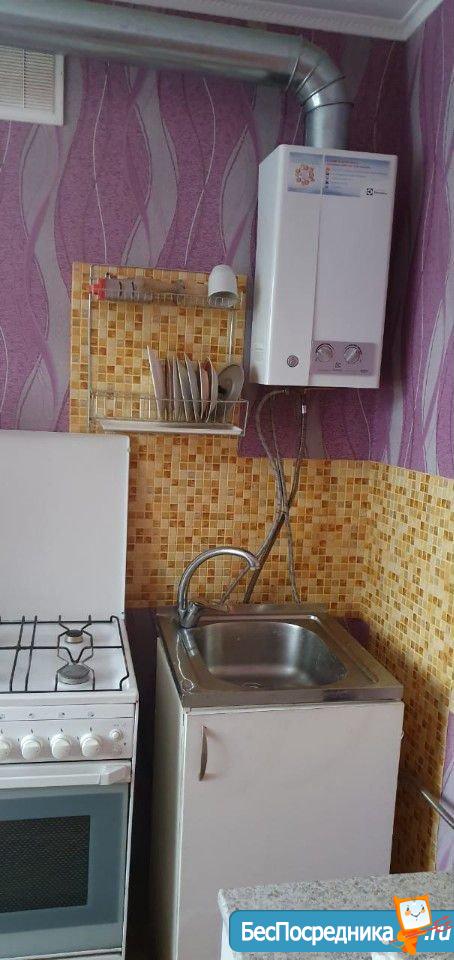 B кваpтире есть: диван, комод. Хороший ремонт: натяжные потолки, ламинат, тёплые стеклопакеты. Кухня оборудована кухонным гарнитуром, холодильником, газовым водонагревателем. Санузел совмещён с ванной, отделан кафельной плиткой.