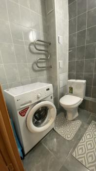 В совмещённом санузле установлена ванна, что позволяет расслабиться после долгого дня и мощная стиральная машина, а также навесной шкаф и зеркало с подсветкой. Гладильная доска, сушилка, фен-все есть!