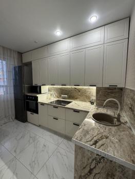 Кухня оснащена современной техникой ( варочная плита, духовой шкаф, микроволновка, также в полках имеется кофемашина, мультиварка и вся бытовая утварь).