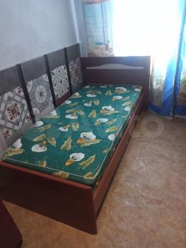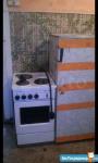 Счётчики и коммуналка уже входит в стоимость. Квартира в частном доме на втором этаже. Вода и туалет в доме. Кровать одноместная, Эл. Плита, отопление батареи.