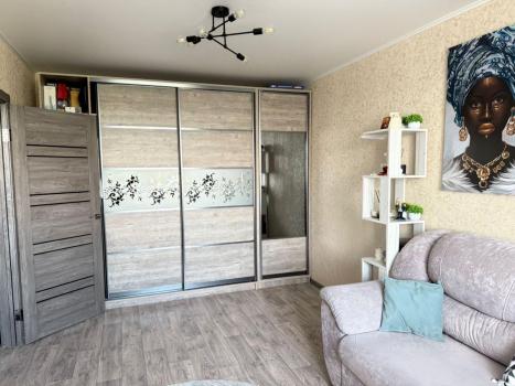 В квартире выполнен свежий евро ремонт. Просторная кухня оснащена необходимой бытовой техникой, включая холодильник и микроволновую печь. В комнате установлен смарт тв и удобный диван, а также вместительный шкаф для хранения вещей.