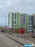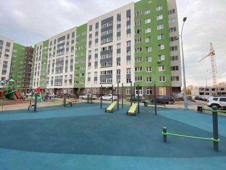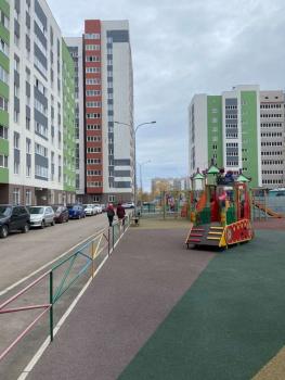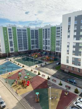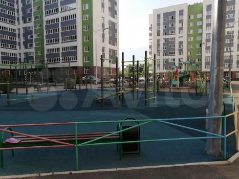 Окна выходят во двор с новой современной игровой площадкой.