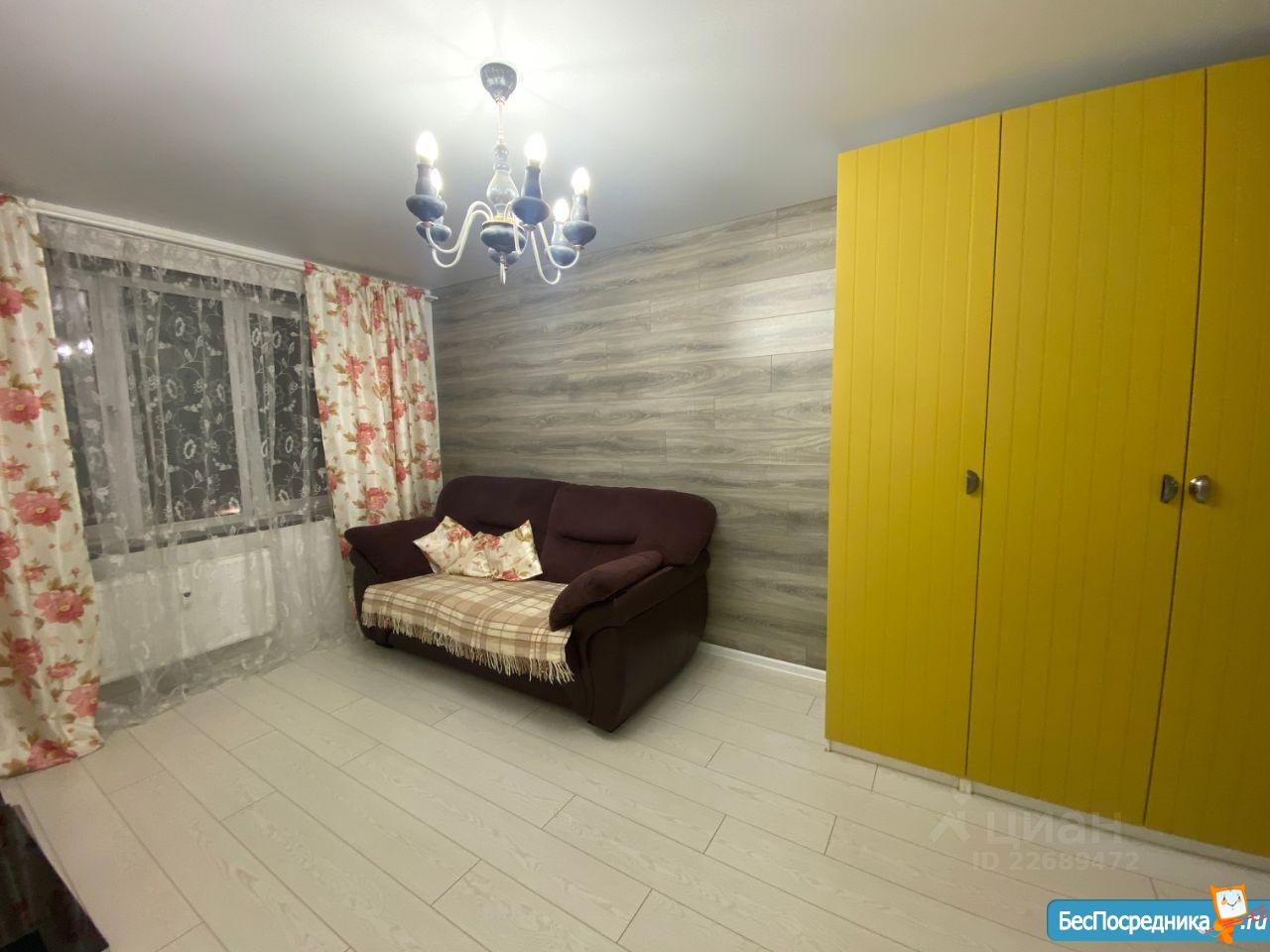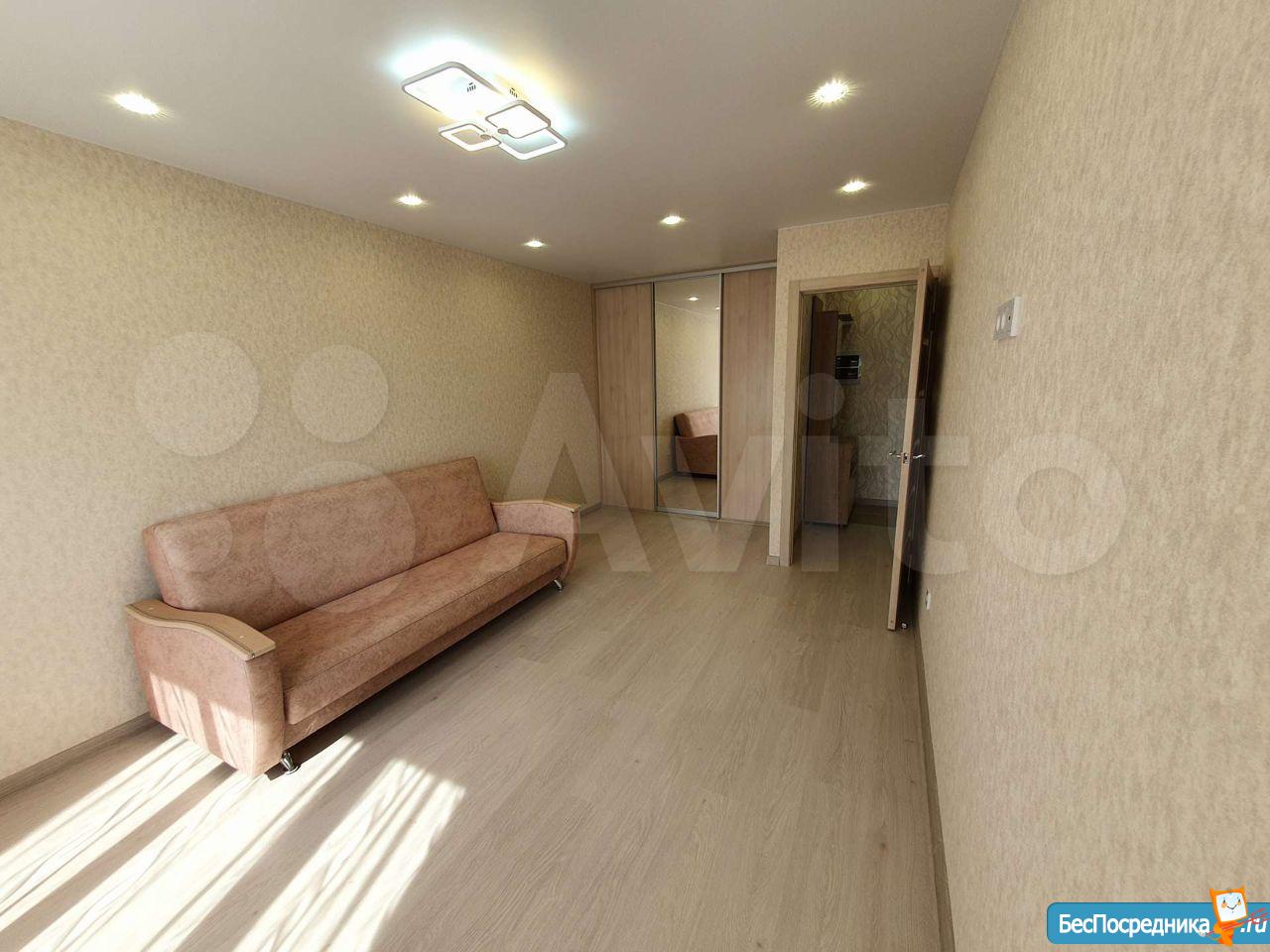 Однокомнатная квартира с ремонтом, рядом детский сад, магазины, детская площадка, парковка. Имеется 2 раскладных дивана, стиральная машина, телевизор,шкаф, холодильник