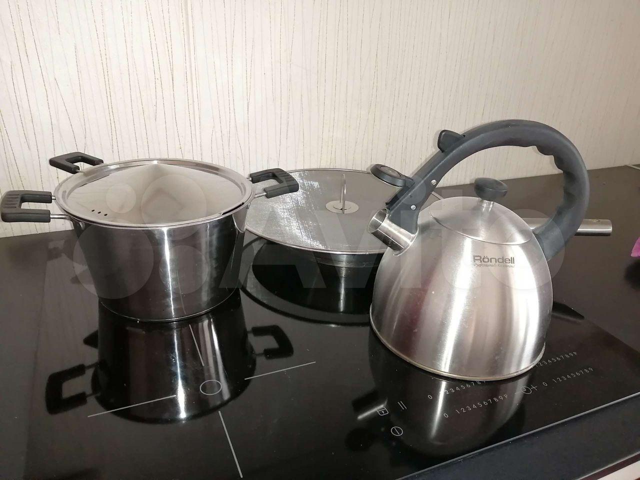 холодильник, плита, микроволновка, стиральная машина, телевизор.