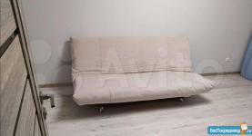 Застеклённая лоджия. Для проживания из бытовой техники и мебели имеется - кухонный гарнитур, шкаф-купе, два раскладных дивана, 2-х камерный холодильник, стиральная машина автомат, плита, обеденный стол, комод.