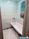 В квартире сделан качественный ремонт, на стенах декоративная штукатурка, в ванной плитка, фартук на кухне тоже из плитки.