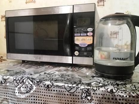 санузел - совмещённый, мебель - кухня, хранение одежды, спальные места, холодильник, плита, микроволновка, стиральная машина, телевизор.