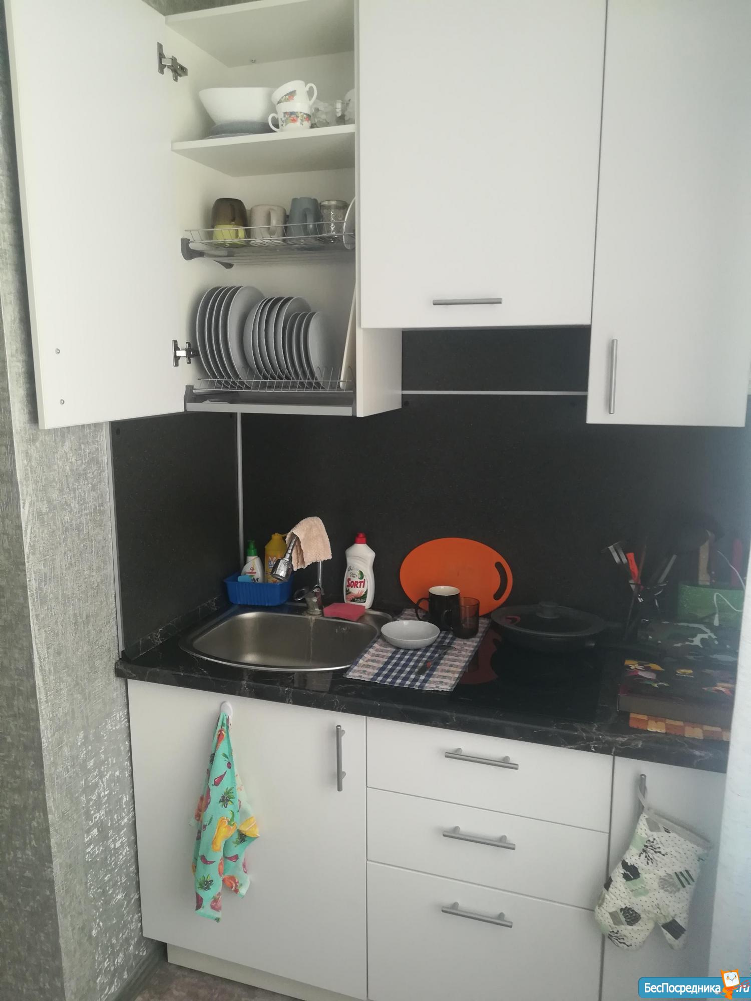 В квартире имеются холодильник двухкамерный, плитка, духовка электрическая, мультиварка, микроволновка, вытяжка, диванчик на кухне и новый диван в зале, стол, шкаф, чайник, стиралка, евро окна.