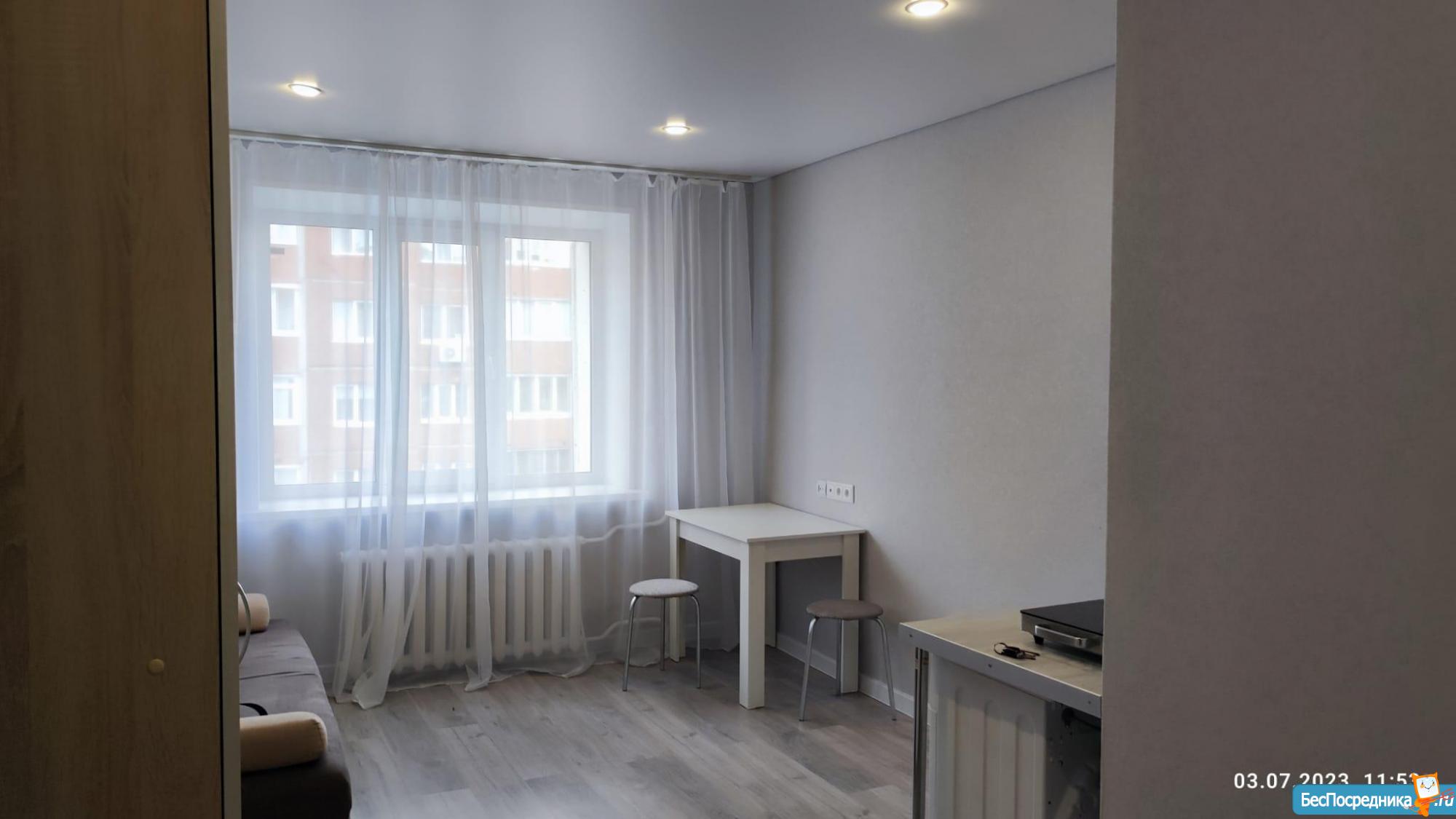 Студия со всеми удобствами, чистая с косметическим ремонтом. Своей кухней и душевой комнатой. Сдается на длительный срок. Стоимость 17000р. Всё входит.