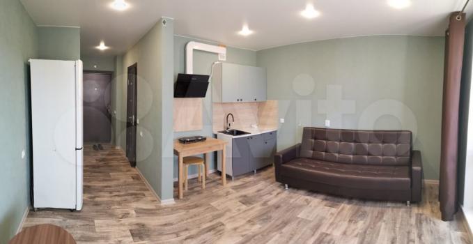 Сдаю квартиру студию в новом доме. Сдан в 2021 году. Есть стиральная машина, микроволновка, душевая кабина, телевизор, интернет. Во дворе детская площадка недалеко магазины магнит, пятёрочка. Остановки автобусов рядом. Все счётчики оплачиваю сам.