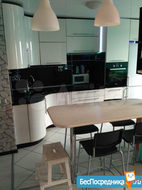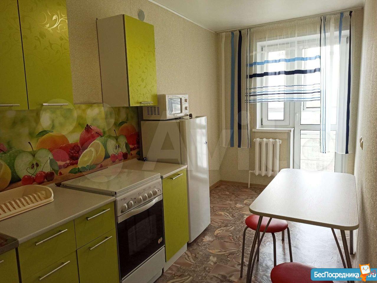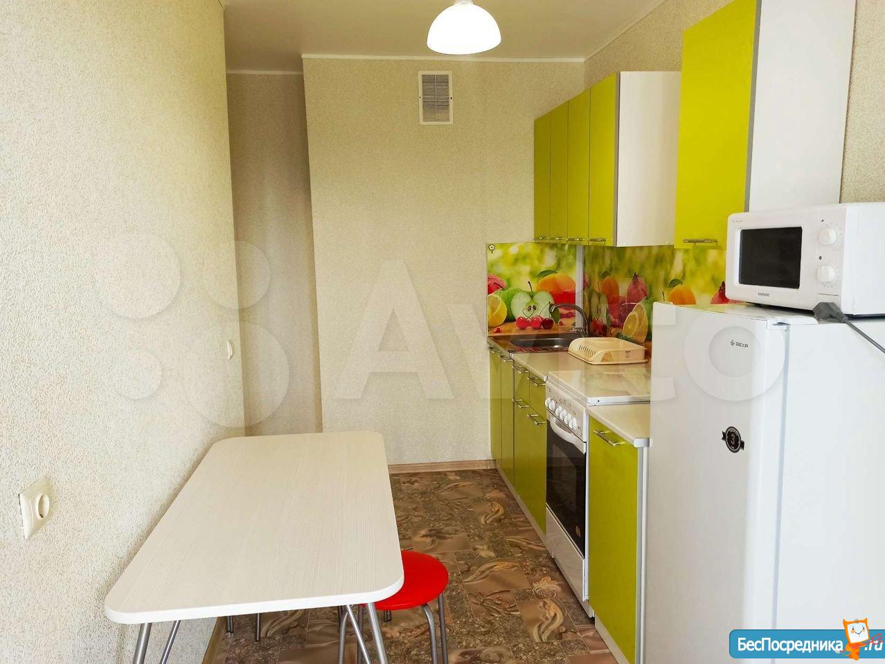 В квартире сделан свежий ремонт. Имеется вся необходимая мебель и бытовая техника для комфортного проживания: диван, стенка под телевизор, два шкафа, кухонный гарнитур, кухонный стол, стулья, холодильник, плита, микроволновая печь, стиральная машина, телевизор.